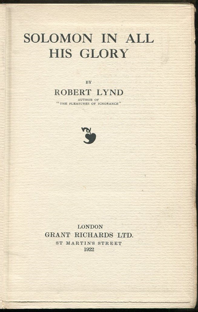 Solomon in All His Glory (Signed By Author) | Livres anciens et modernes | Lynd, Robert