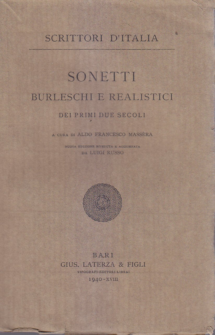 Sonetti Burleschi E Realistici Dei Primi Due Secoli a cura Massera 1940 Laterza