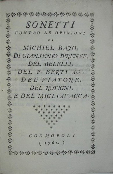 SONETTI contro le opinioni di Michiel Bafo, di Giansenio Iprense, del Belechi, del P. Berti A. G., del Viatore, del Rotigni, e del Migliavacca.