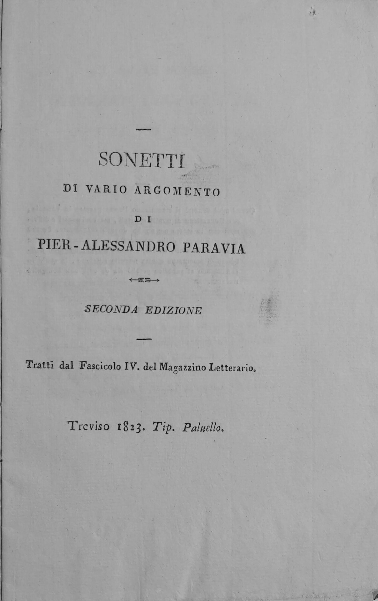 SONETTI DI VARIO ARGOMENTO di. Seconda edizione. Tratti dal Fascicolo IV del Magazzino Letterario.