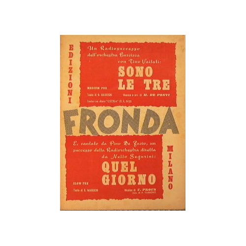 Un radiosuccesso dell'Orchestra Barzizza con Tino Vailati - Cantato da Pino De Fazio, Un successo della Radiorchestra diretta da Nello Segurini - in 8° - pp.25 - Brossura editoriale - Partitura per Pianoforte, Violino/Fisarmonica, Saxofono Tenore, Saxofono Contralto, Tromba, Batteria e Contrabbasso/Chitarra