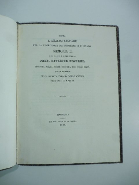 In 4 (cm 22 x 30), pp. 25 + (3b). Brossura muta coeva. Solo la parte II di questo studio sui problemi di I grado.