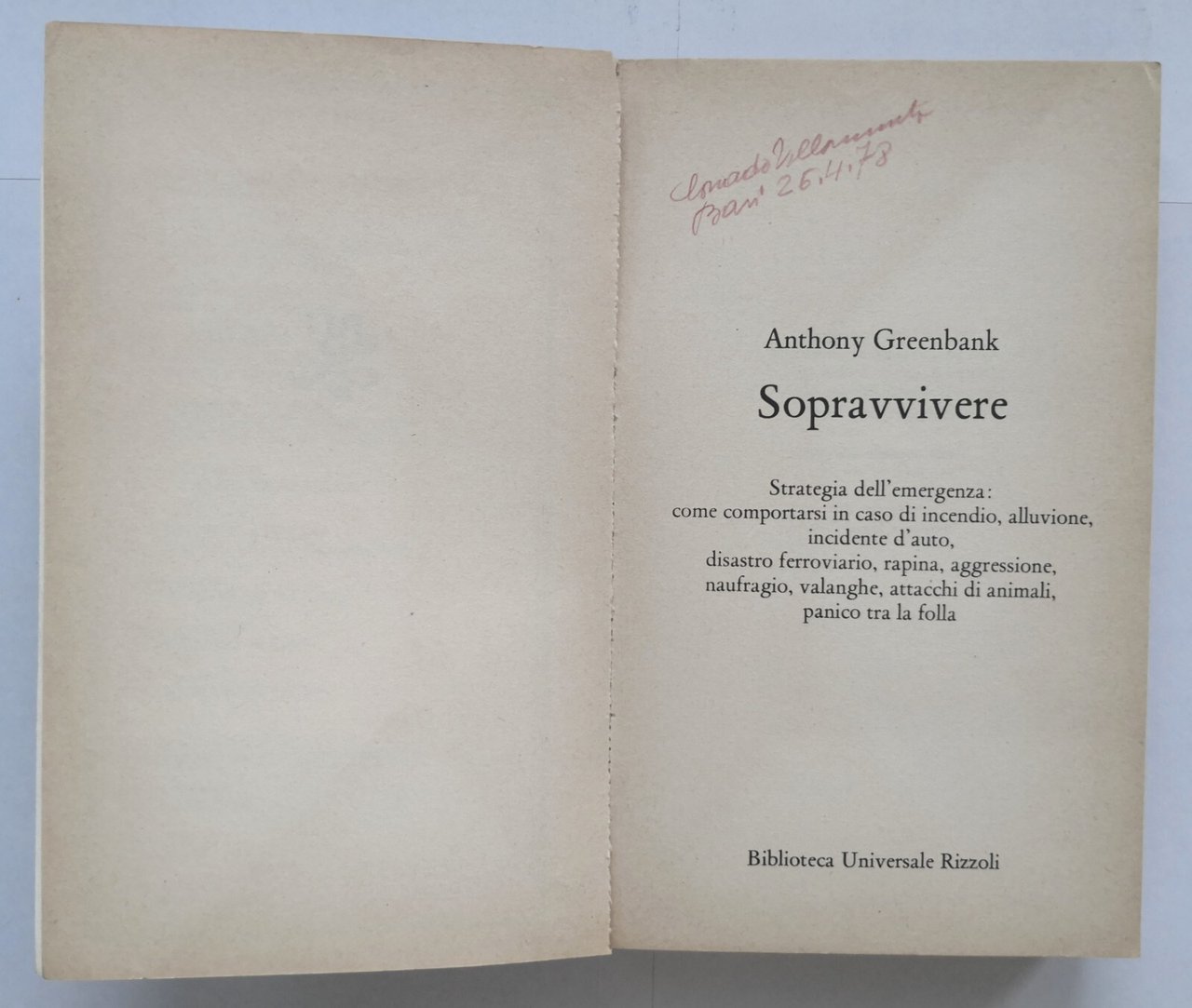 SOPRAVVIVERE di Anthony Greenbank 1978 Rizzoli libro strategia dell' emergenza