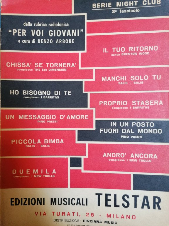 Spartito SERIE NIGHT CLUB- rubrica PER VOI GIOVANI - Renzo Arbore - ed. telstar