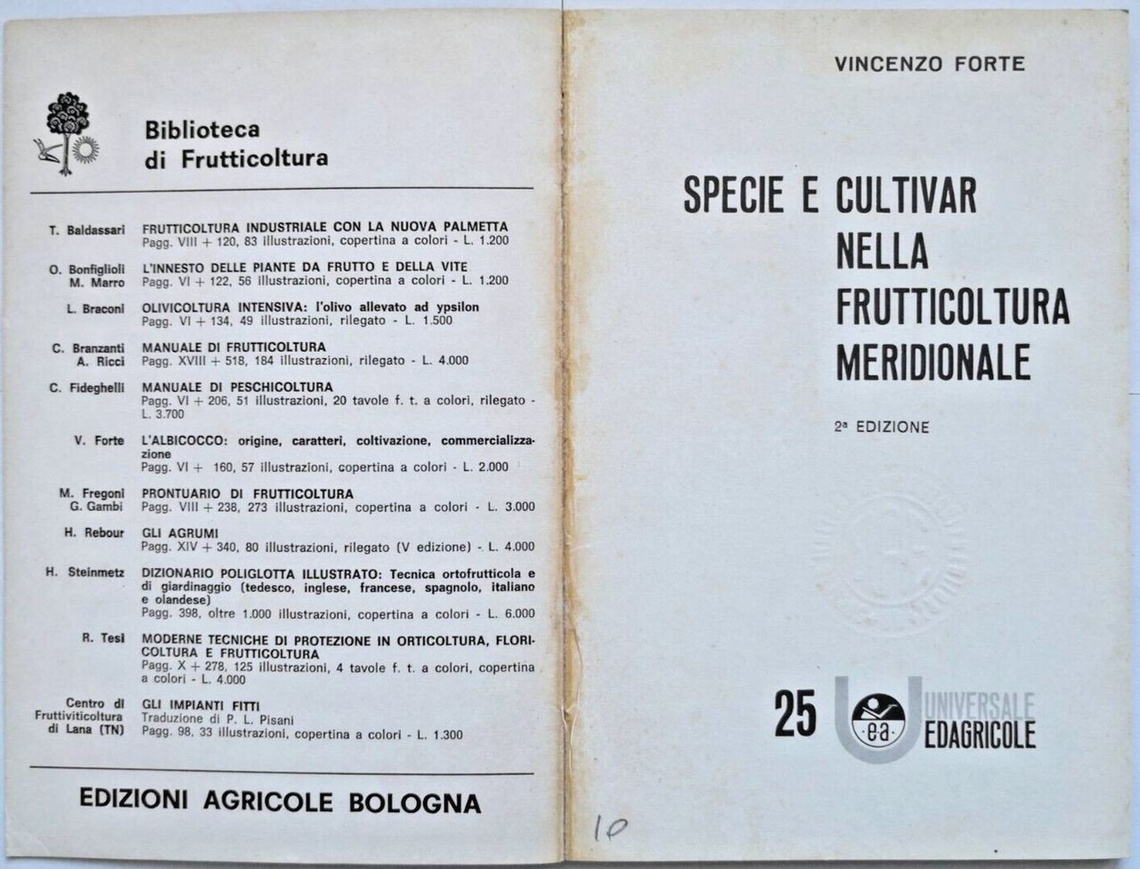 SPECIE E CULTIVAR NELLA FRUTTICOLTURA MERIDIONALE di Vincenzo Forte 1975 Libro