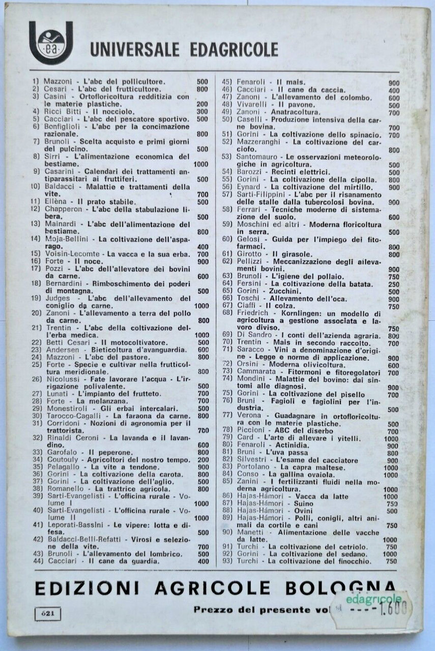 Editore Edizioni Agricole, 1975. Collana "Universale Edagricole". 64 pagine, figure in bianco e nero nel testo e fuori testo. Copertina editoriale in brossura. Stato di conservazione: molto buono (pagine normalmente ingiallite) Libro usato agricoltura alberi da frutta