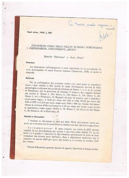 Statistiche vitali nelle vacche di razza marchigiana: inseminazione, concepimenti, aborti. Estratto.