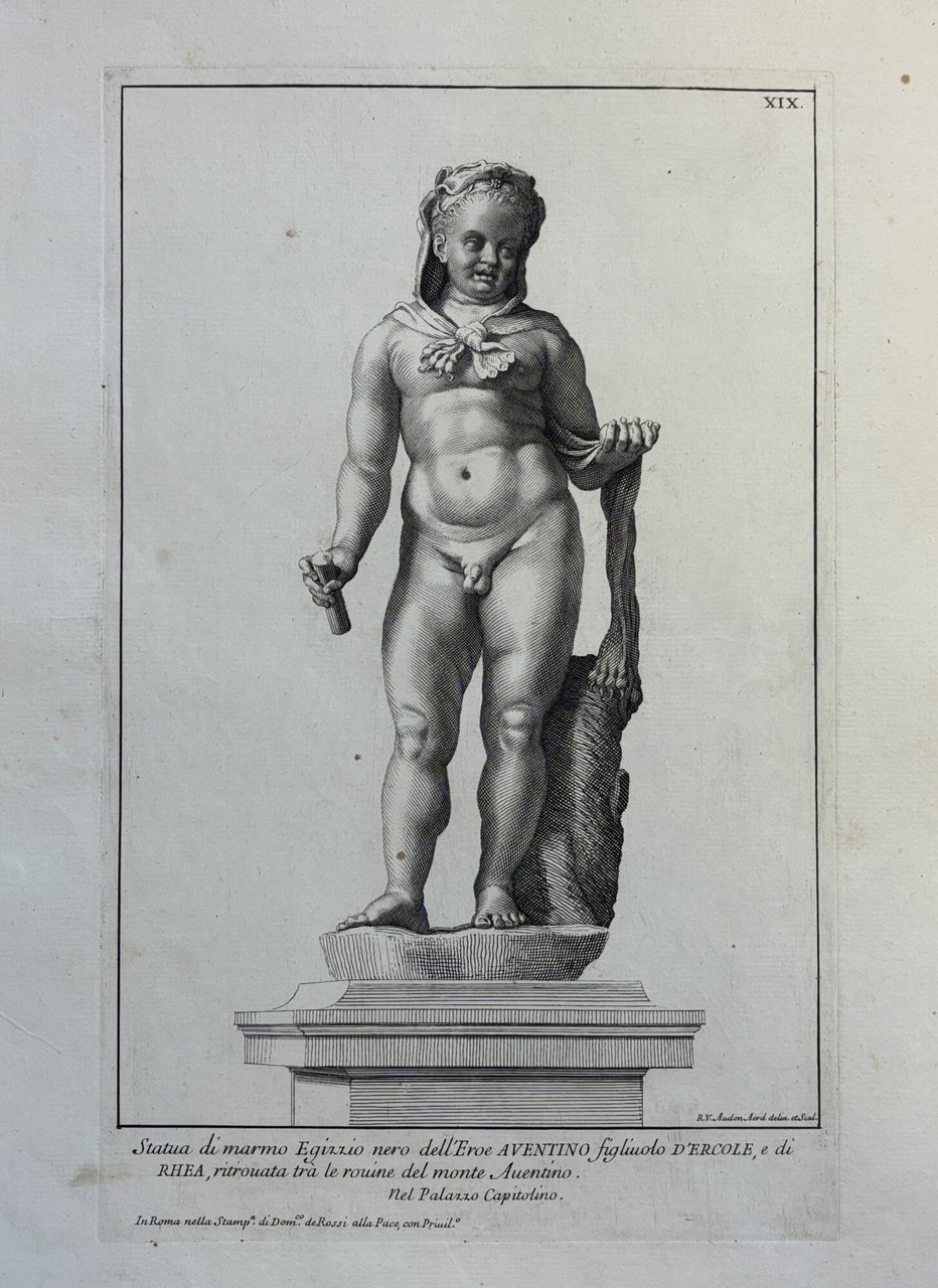 STATUA DI MARMO DELL' EROE AVENTINO FIGLIUOLO D' ERCOLE E DI RHEA
