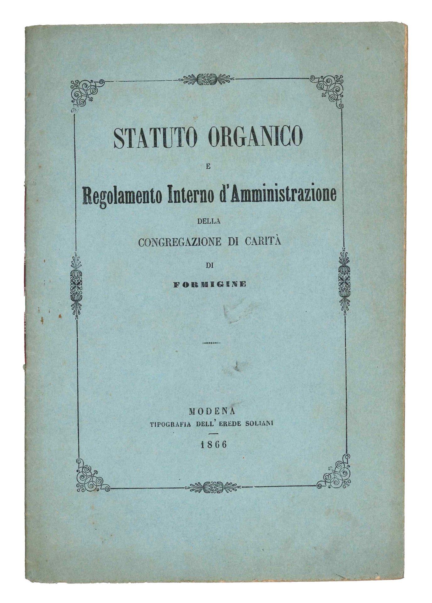 Statuto organico e Regolamento interno d'amministrazione della Congregazione di carità di Formigine.