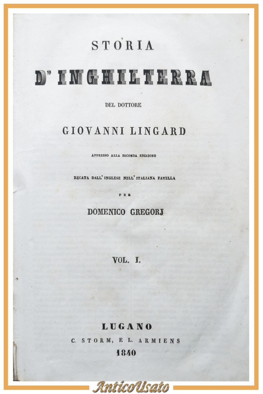 STORIA D'INGHILTERRA di Giovanni Lingard + PARLAMENTO 3 volumi 1840 libro antico