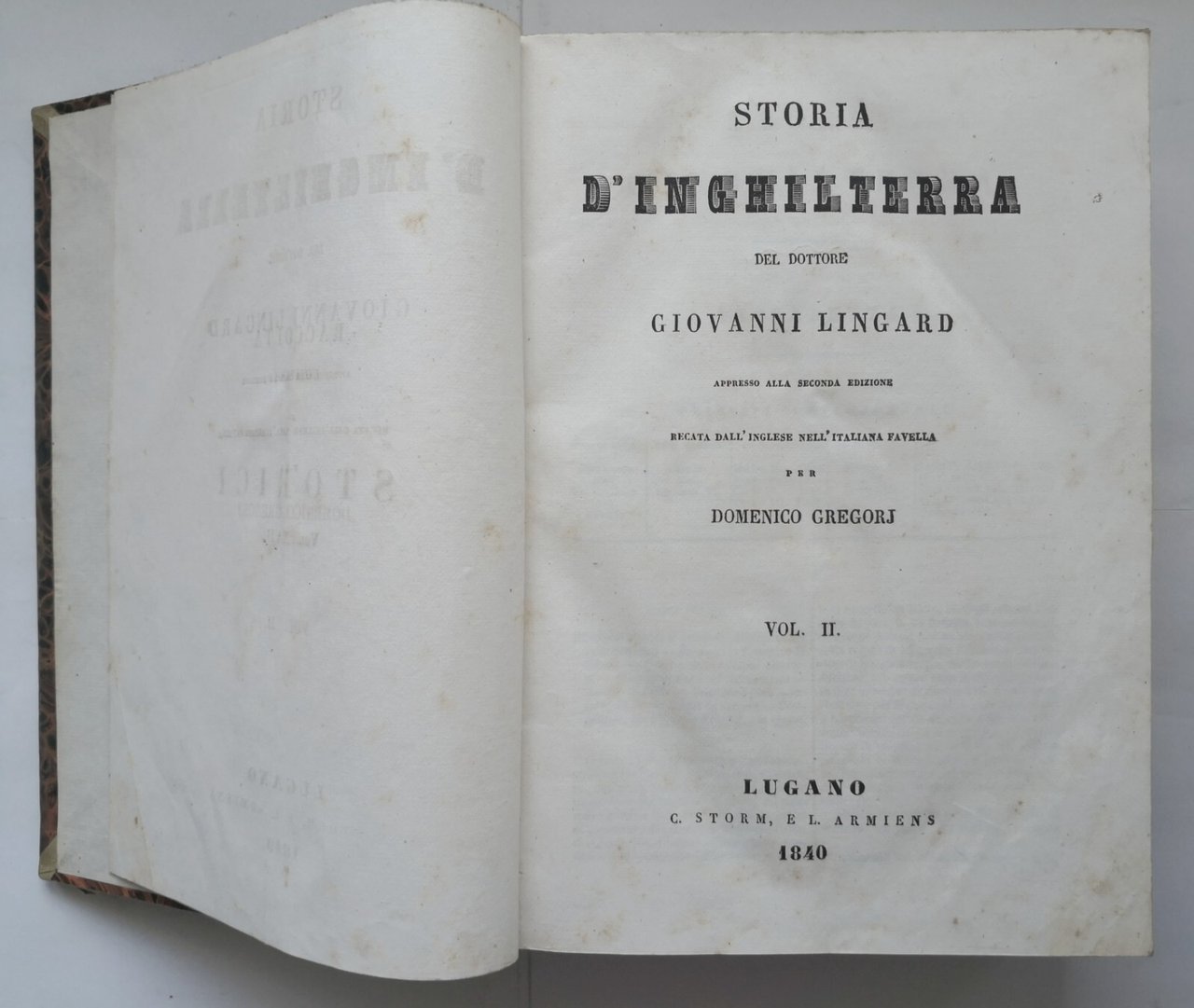 Lugano, C. Storm e L. Armiens, 1840. Collana "Raccolta completa di storici" volume XVI, XVII.