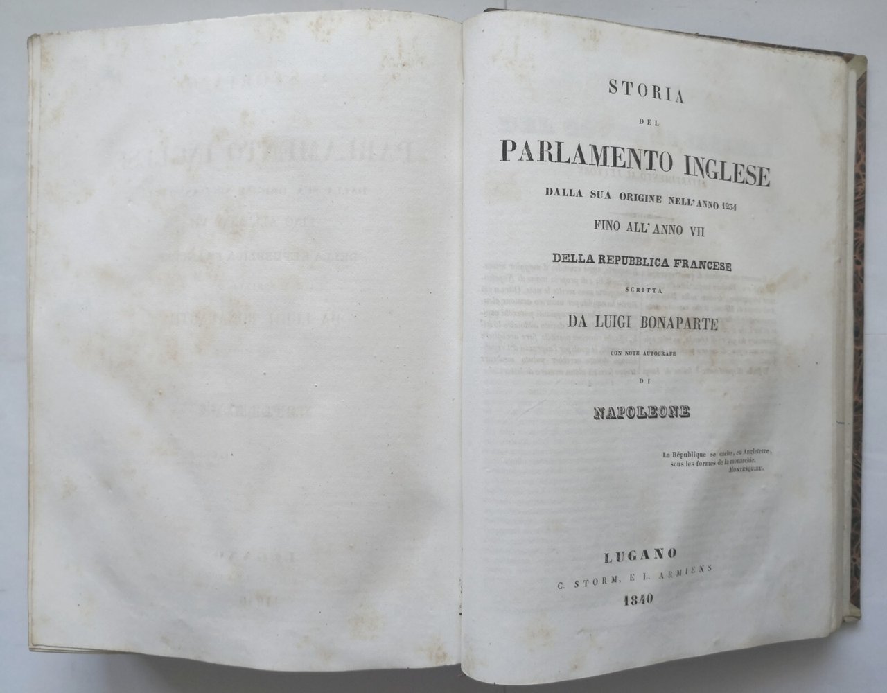 STORIA D'INGHILTERRA di Giovanni Lingard. Opera completa in 2 volumi. + STORIA DEL PARLAMENTO INGLESE dalla sua origine nell'anno 1234 fino all'anno VII della repubblica francese scritta da Luigi Bonaparte con note autografe di Napoleone.