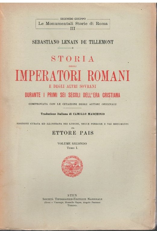 Storia degli imperatori romani e degli altri sovrani durante i primi sei secoli dell'era cristiana Volume secondo Tomo I