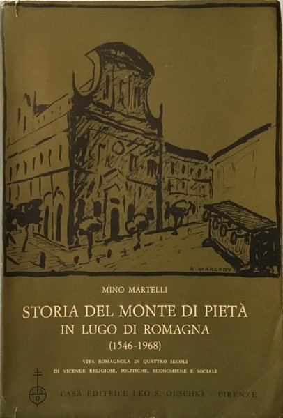 Mino Martelli. Storia del Monte di Pietà in Lugo di Romagna (1546-1968). Un aspetto di vita romagnola in oltre quattro secoli di vicende religiose, politiche, economiche e sociali. Collana Biblioteca dell'Archivio Storico Italiano n° 17. Olschki Firenze, 1969. Brossura con sovraccoperta illustrata. Pagine 456. Dimensioni cm. 16,5 x 24,5. 1^ edizione. Con 110 documenti inediti, 35 tavole prospettiche, 30 illustrazioni. Esemplare in buonissime condizioni.