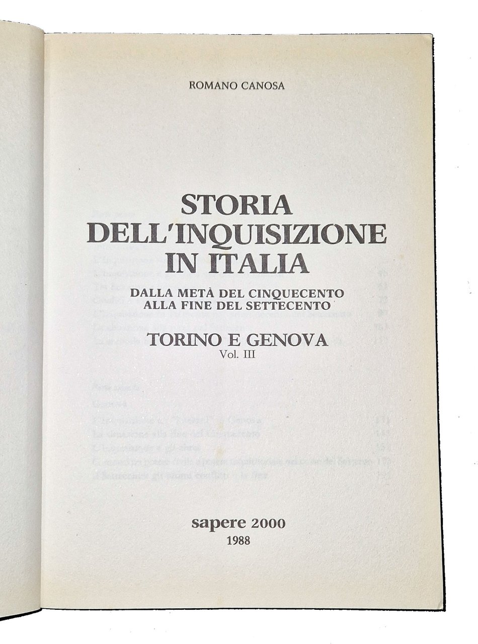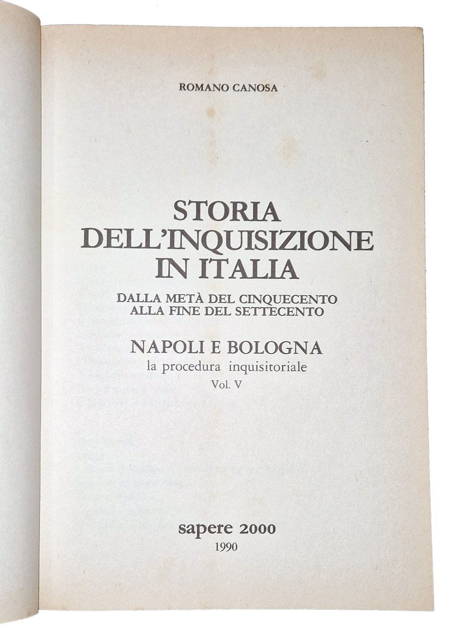 Storia dell'inquisizione in Italia dalla metà del cinquecento alla fine del settecento. Vol. I [-V]. | Livres anciens et modernes | Canosa, Romano