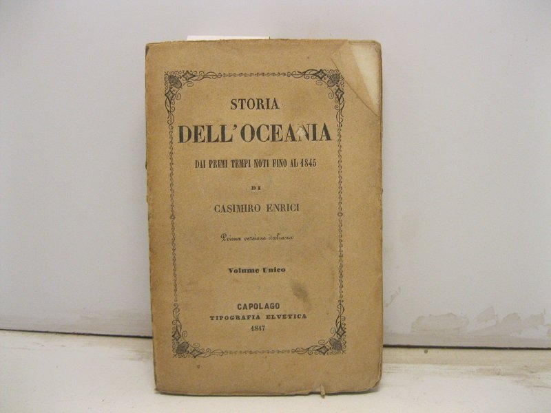 Storia dell'Oceania dai primi tempi noti fino al 1845. Prima versione italiana. Volume unico