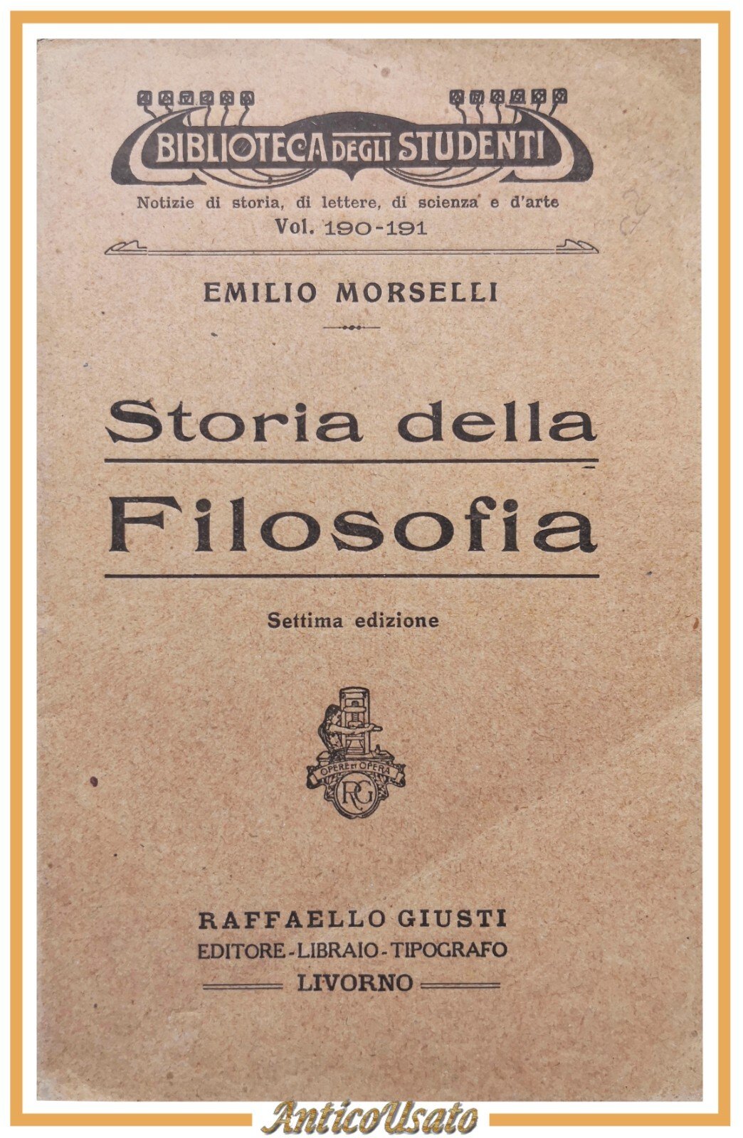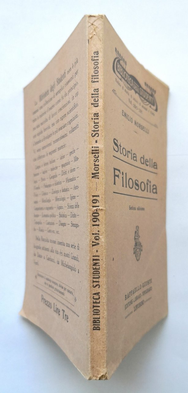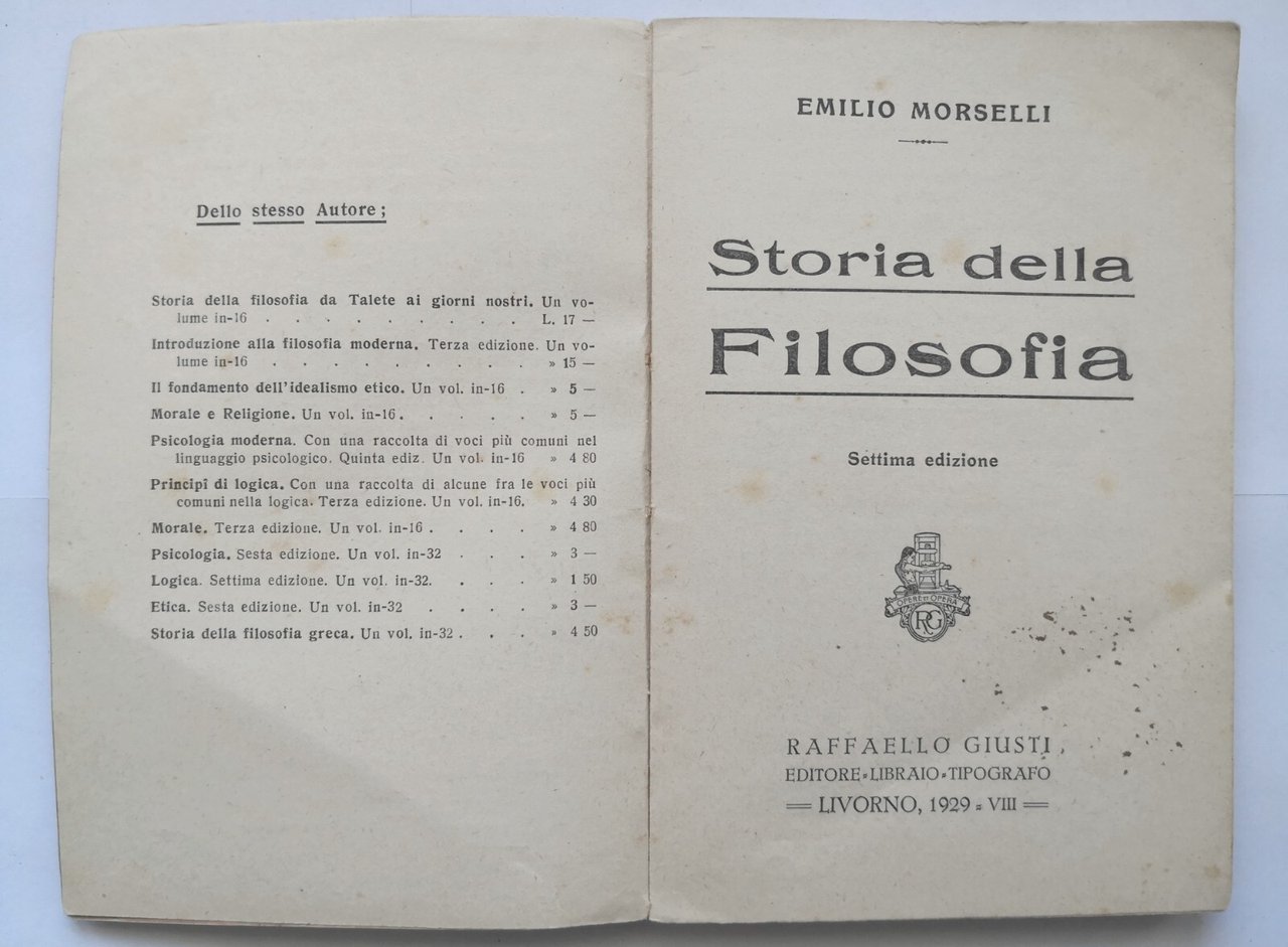 STORIA DELLA FILOSOFIA di Emilio Morselli 1929 Raffaello Giusti Libro