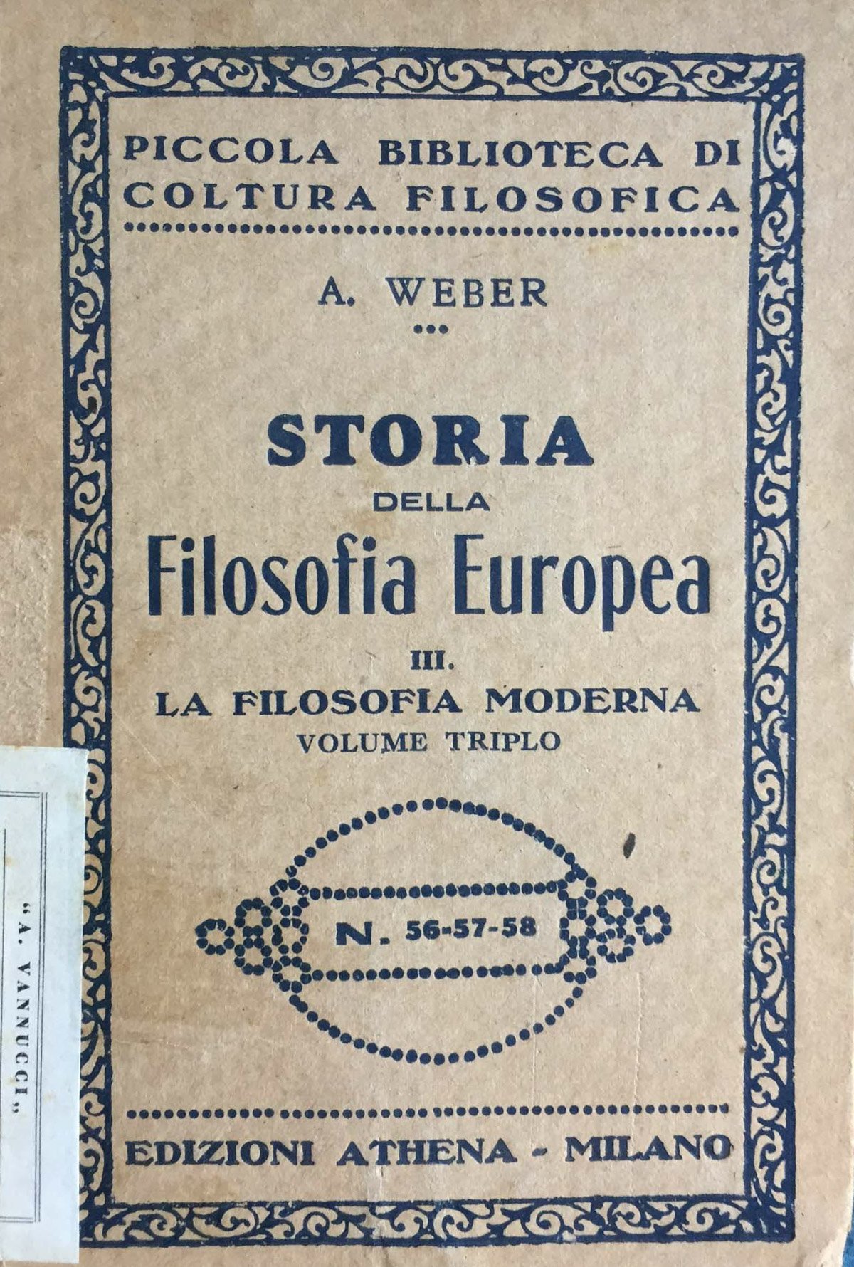 Coll. Piccola biblioteca di coltura filosofica, 56-57-58. Timbro al frontespizio. 100 � Ba In Ottavi (15-23cm ) Buono (Good) Buono