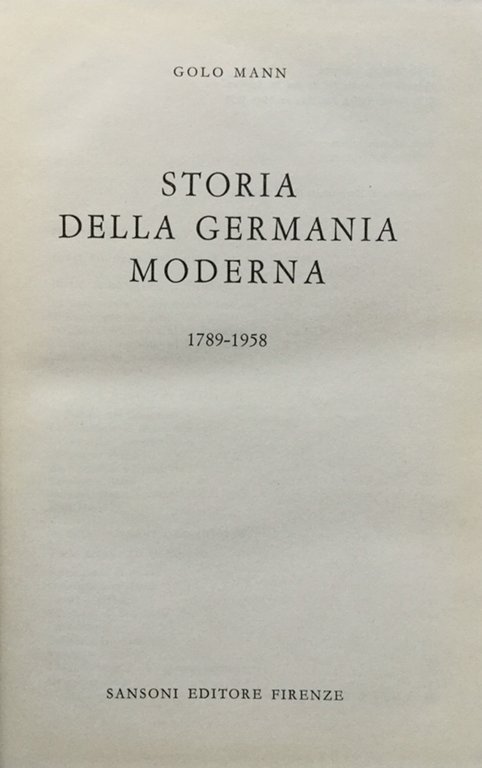 Golo Mann, Storia della Germania moderna 1789 - 1958. Firenze, Sansoni editore, 1964. Cartonato- 686 pp., 23 cm. Condizioni eccellenti 12 Ottimo (Fine) Ottimo