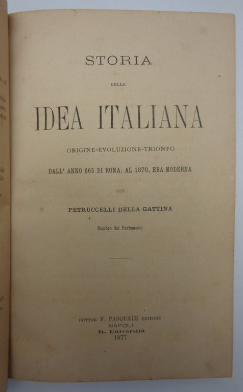 STORIA DELLA IDEA ITALIANA. Origine, evoluzione, trionfo dall'anno 665 di Roma, al 1870 era moderna.