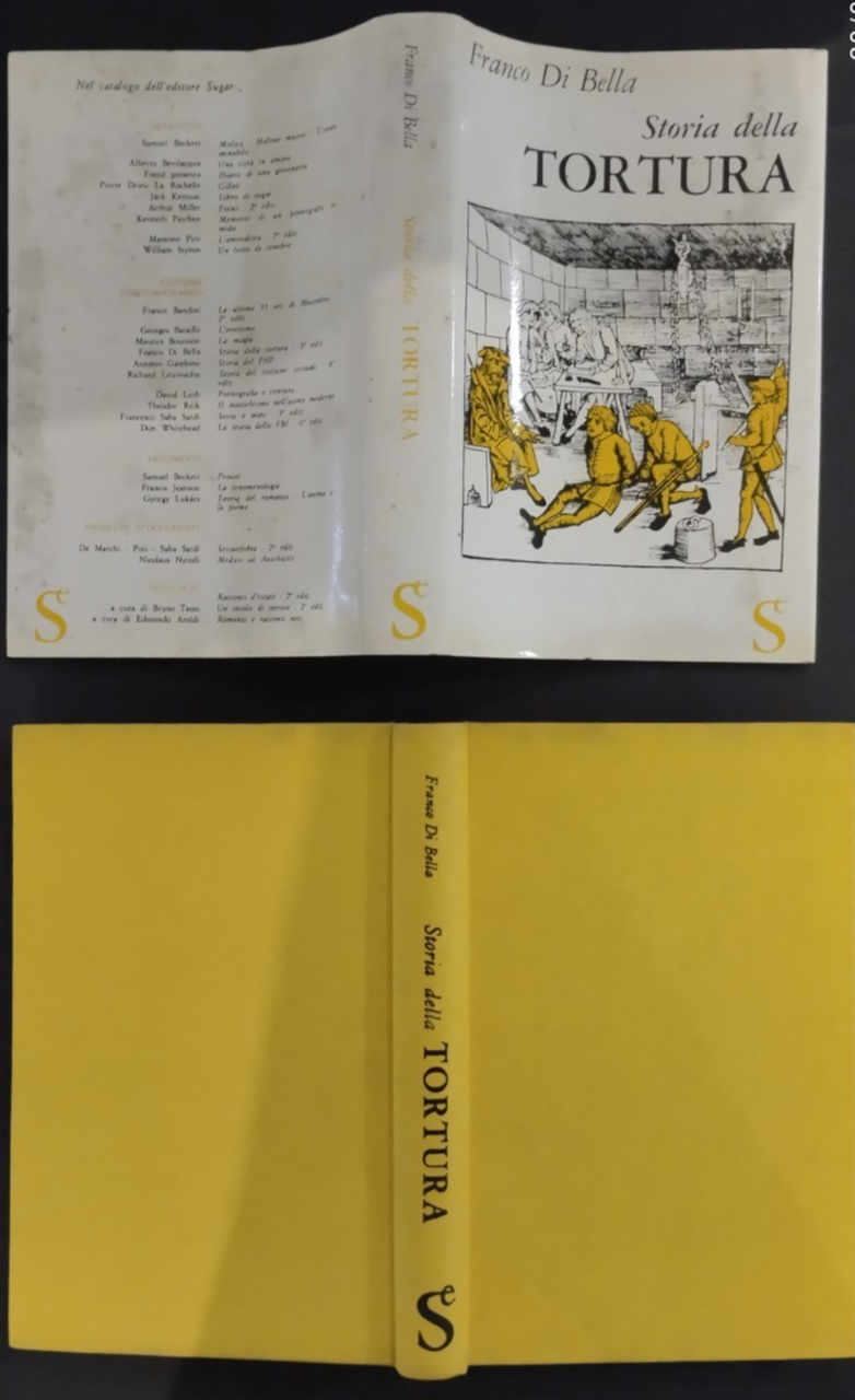 STORIA DELLA TORTURA di Franco Di Bella. Sugar Editore, 1963 . 352 pagine, numerose illustrazioni in bianco e nero nel testo. Copertina editoriale in tutta tela con sovraccoperta. Stato di conservazione: molto buono (pagine normalmente ingiallite) Libro usato saggistica
