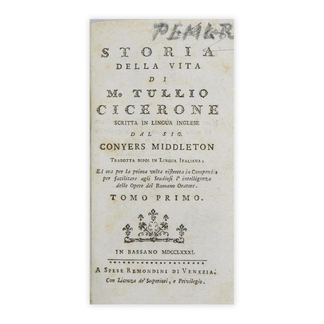 Storia della vita di M. Tullio Cicerone 1781 | Livres anciens et modernes |