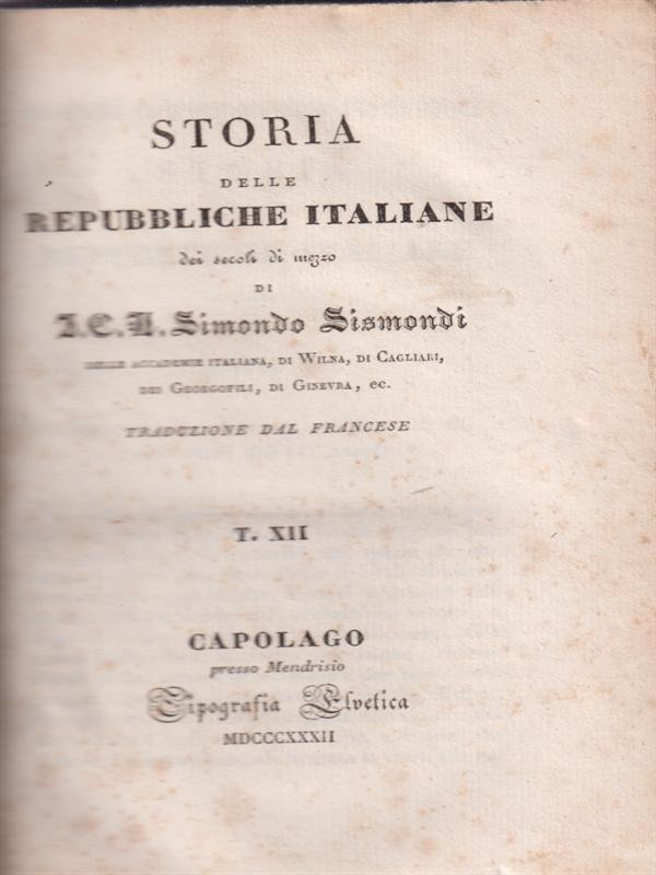Storia delle Repubbliche Italiane dei secoli di mezzo XII
