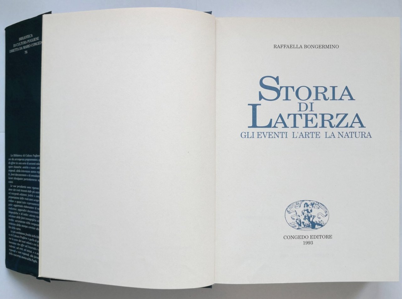STORIA DI LATERZA eventi arte natura di Raffaella Bongermino 1993 Congedo Libro
