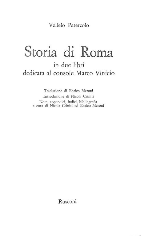 Testo in italiano. In due libri dedicata al console Marco Vinicio. 305 p., 8 carte di tav. : ill., c. geogr. ; 22. 937 - Ba Ottimo (Fine)