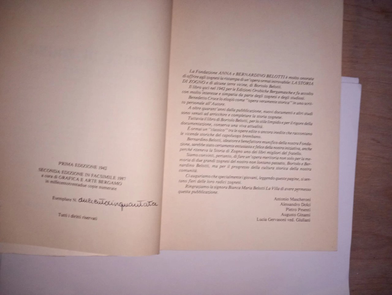 Bortolo Belotti, Storia di Zogno e di alcune terre vicine - ed. orobiche Bergamo, II ed. facsimile 1987 - esemplare n. 250