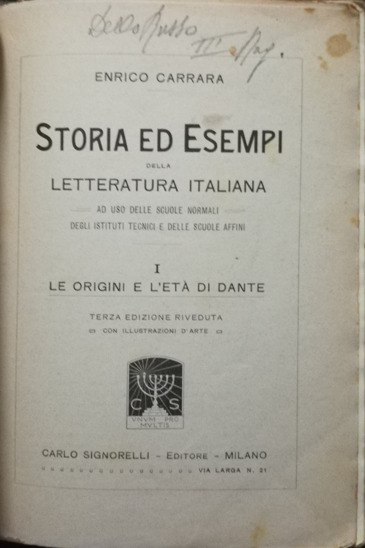 Storia ed esempi della letteratura italiana - ad uso delle scuole normali degli istituti tecnici e delle scuole affini - I - Le origini e l’età di Dante