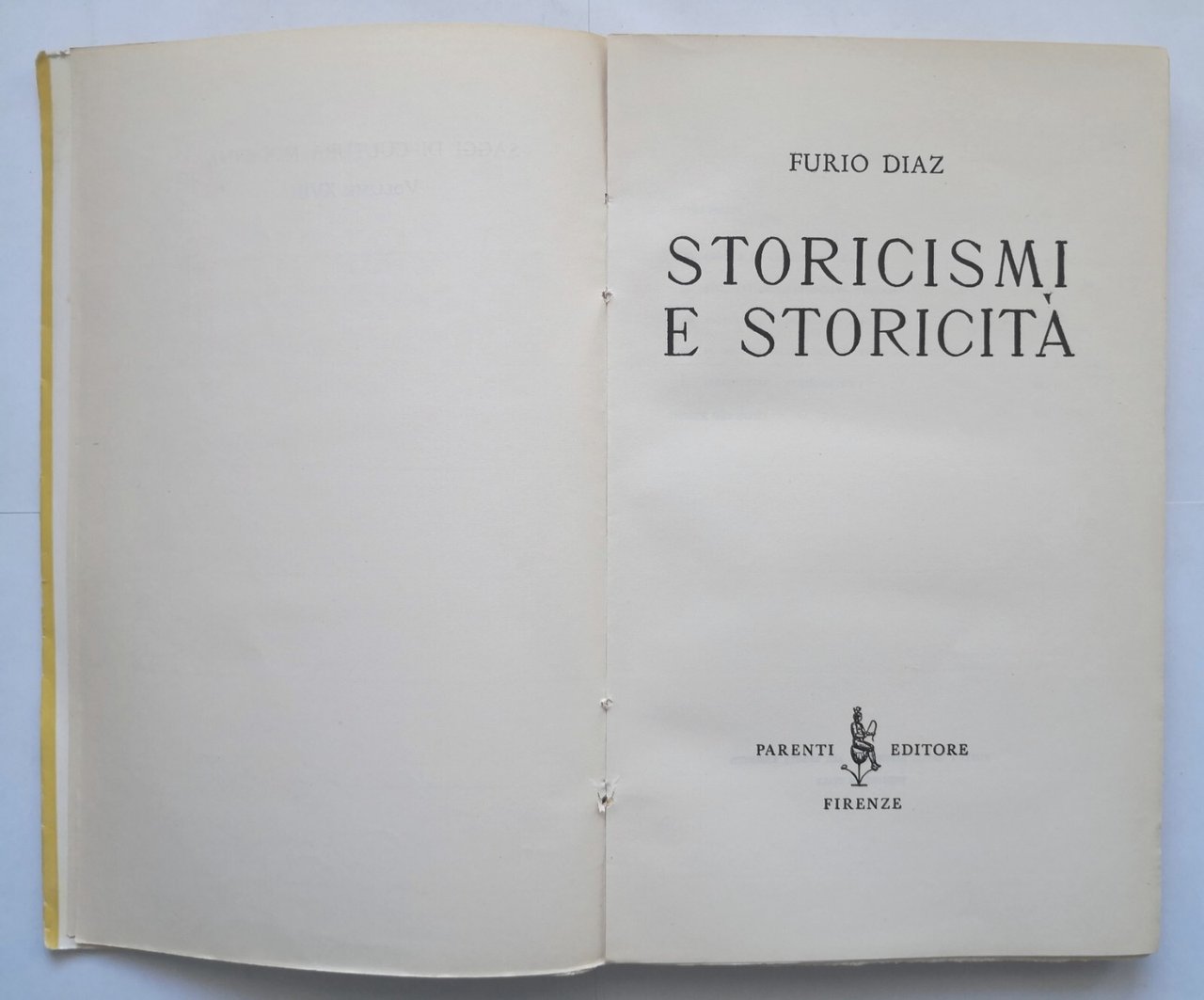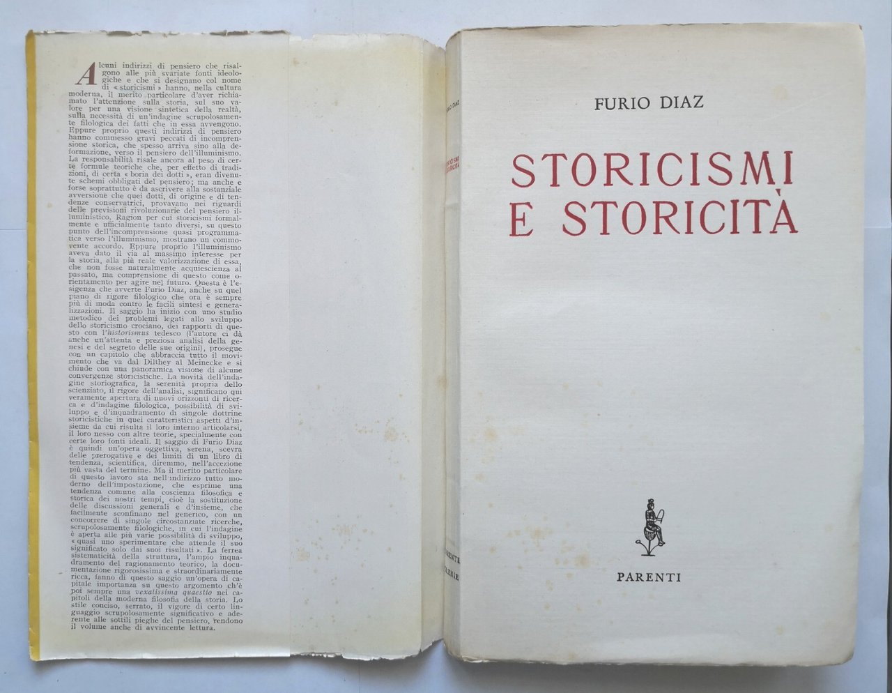 STORICISMI E STORICITÀ di Furio Diaz 1956 Parenti Libro I edizione