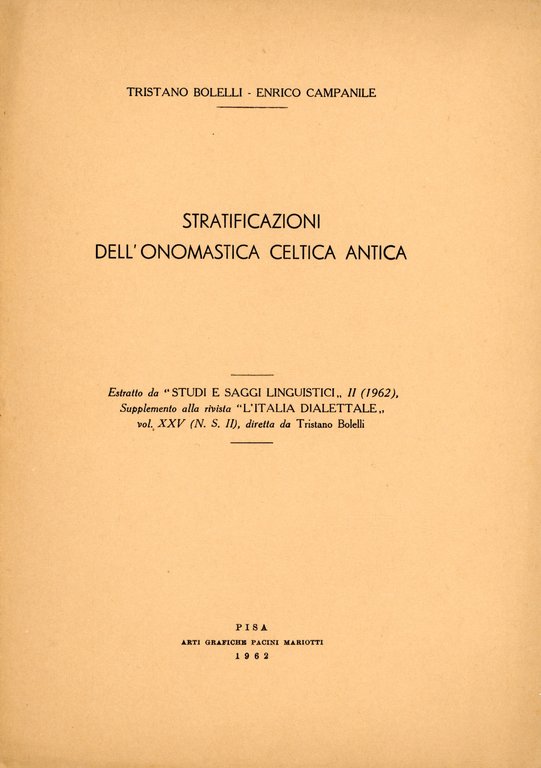 Estratto da Studi e Saggi linguistici, II (1962), supplemento alla rivista L'Italia dialettale, vol. XXV (n.s. II),11 pagine. 453 � Ba In Ottavi (15-23cm ) Ottimo (Fine) Ottimo