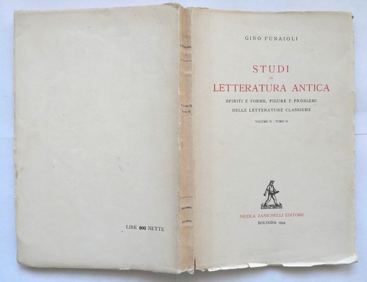 STUDI DI LETTERATURA ANTICA di Gino Funaioli volume 2 tomo II 1949 Zanichelli