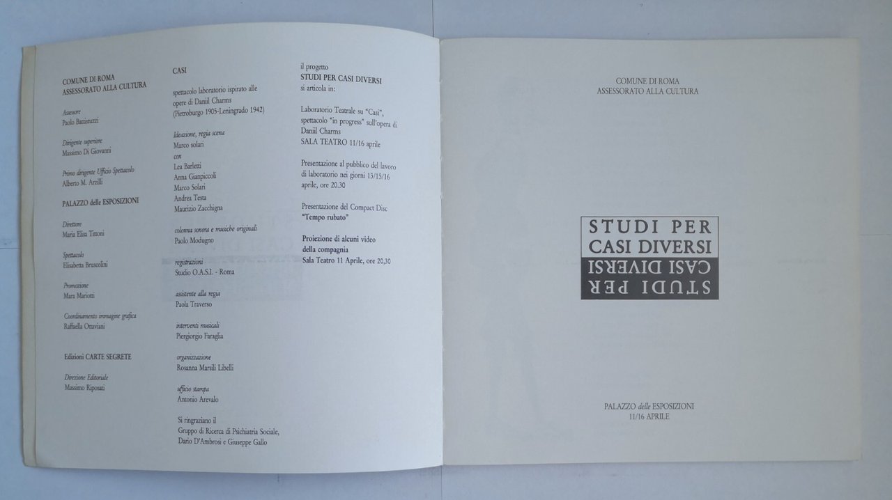 STUDI PER CASI DIVERSI spettacolo Edizioni Carte Segrete Libro mostra Roma