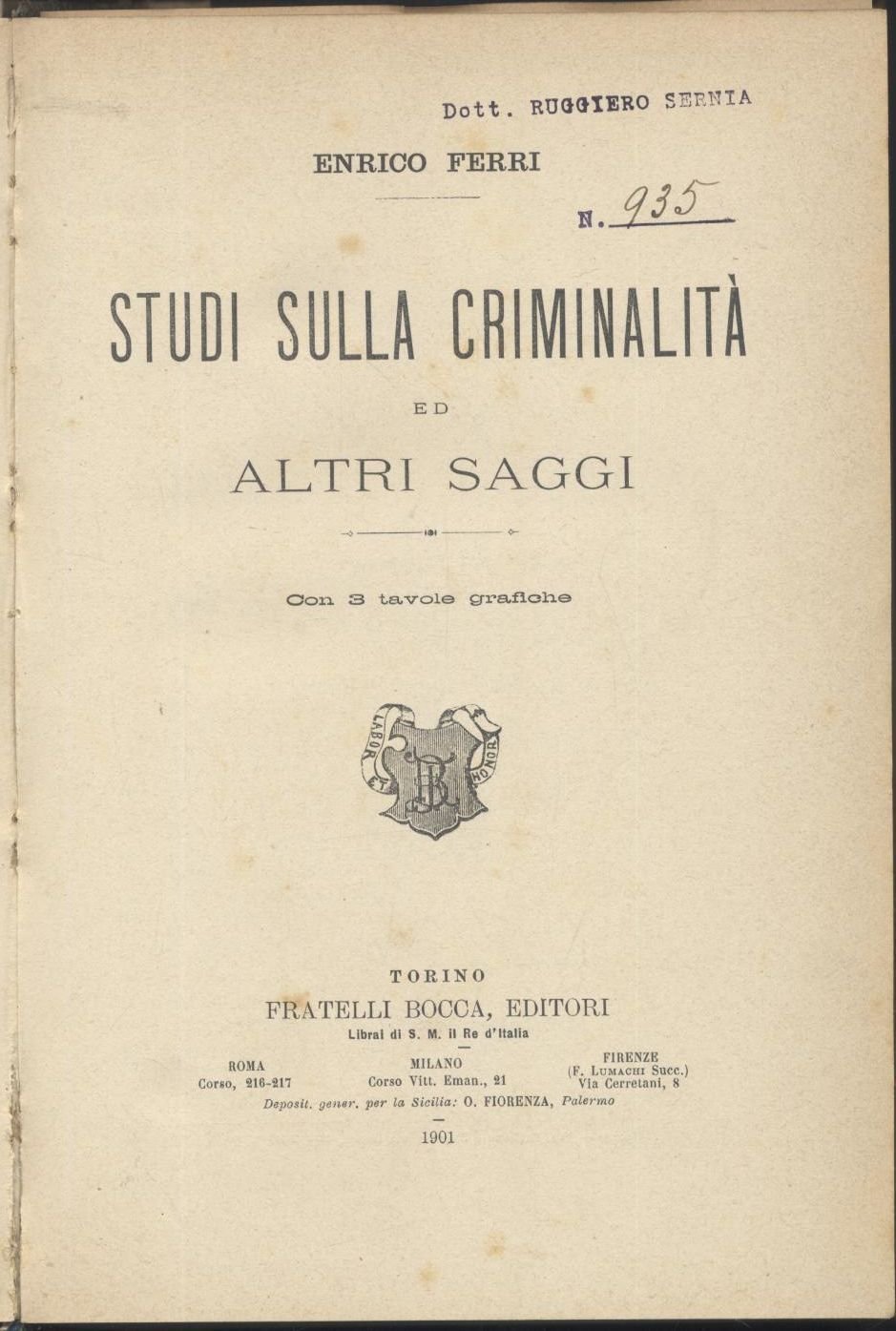 STUDI SULLA CRIMINALITÀ E ALTRI SAGGI di Enrico Ferri.