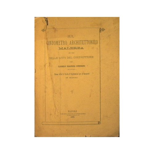 Ad uso delle arti del costruttore. - in 8° - pp.32 - Brossura editoriale - Una tavola fuori testo in bianco nero. - Eccetto la legatura testo in buono stato di conservazione. - Strappetti, piccola mancanza e leggere ingialliture alla brossura.