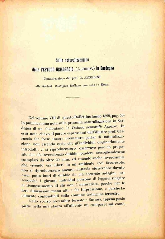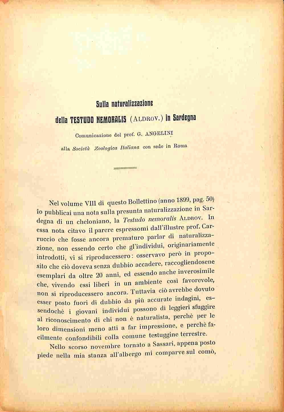 Sulla naturalizzazione della Testudo nemoralis in Sardegna
