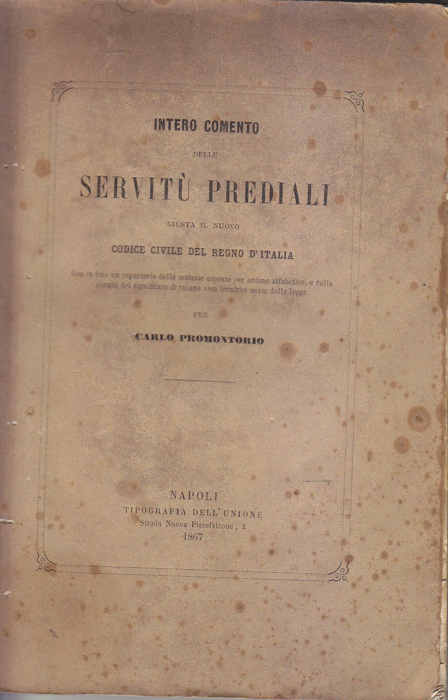 SULLE SERVITU' PREDIALI codice civile regno d'Italia di Carlo Promontorio 1867