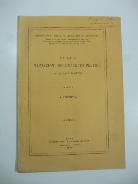 In 8 (cm 19 x 27), pp. (8). Pagine intonse. Brossura editoriale. Estratto editoriale dai Rendiconti della R. Accademia dei Lincei.