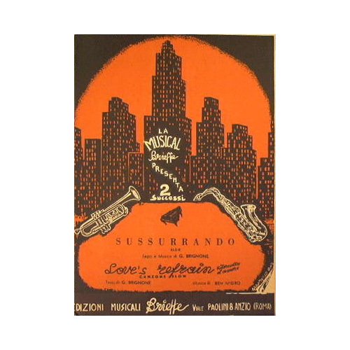 Contiene il testo di ' Sussurrando ' - in 8° - pp.23 - Brossura editoriale illustrata - Partitura per Trombone, Violini/Fisarmonica, Saxofono Contralto, Saxofono Tenore, Tromba e Batteria