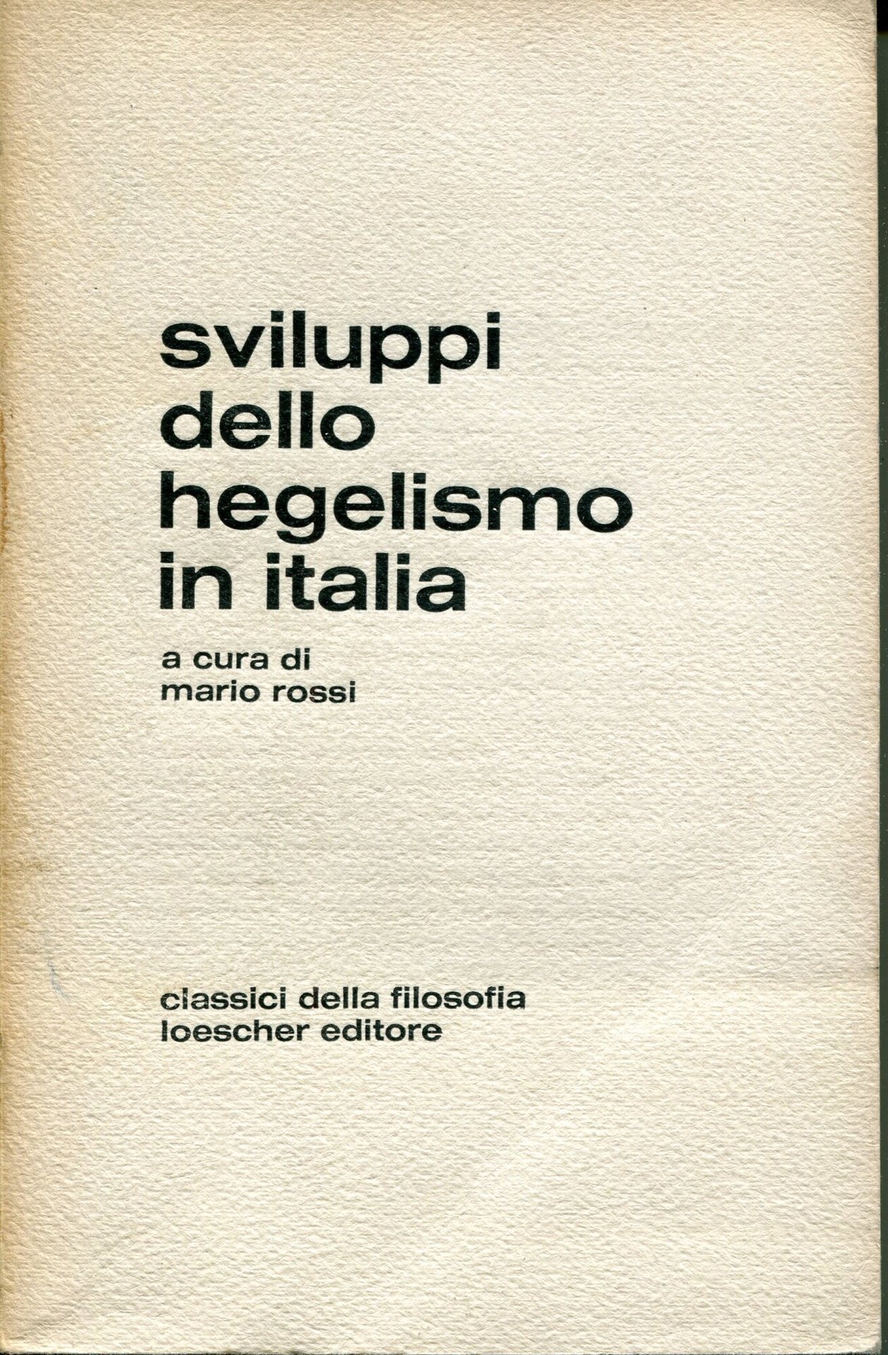 Sviluppi dello hegelismo in Italia : una antologia dagli scritti di De Sanctis, Tommasi, Labriola