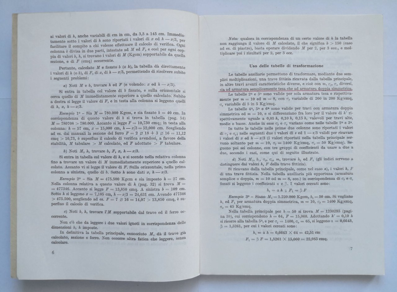 TABELLE PER CALCOLO IMMEDIATO DELLE TRAVI INFLESSE DI CEMENTO ARMATO 1967 Libro
