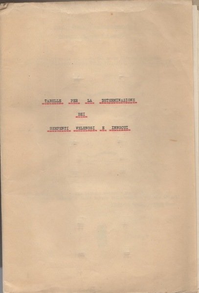 Tabelle per la determinazione dei serpenti velenosi e innocui.
