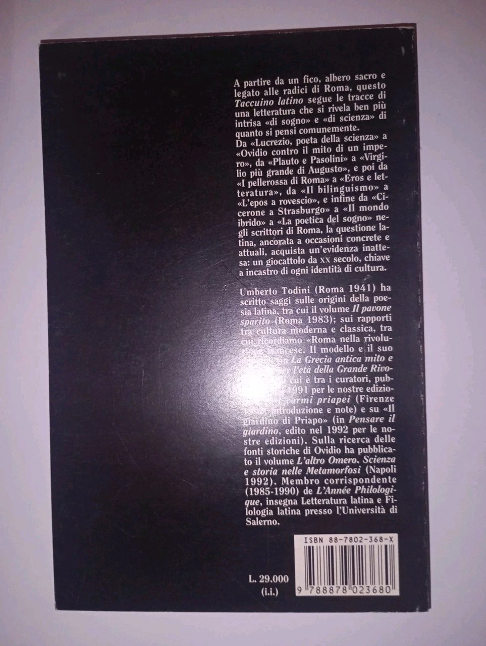 UMBERTO TODINI, taccuino latino - Guerini studio, 1992- copertina morbida, pag. 207, formato cm 13,5 x 20,5- eccellente stato e pari al nuovo, timbro "copia omaggio" su pagina di risguardo