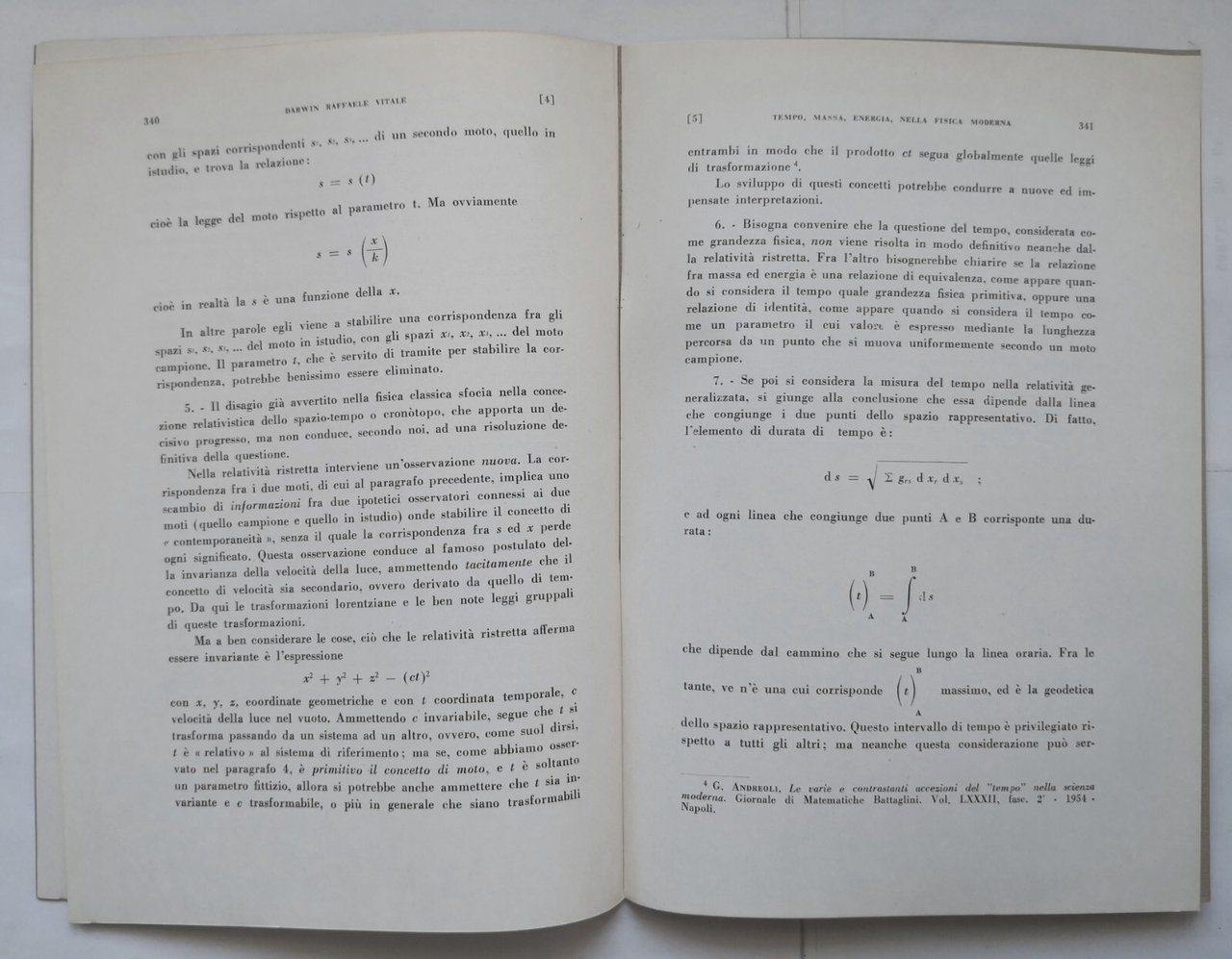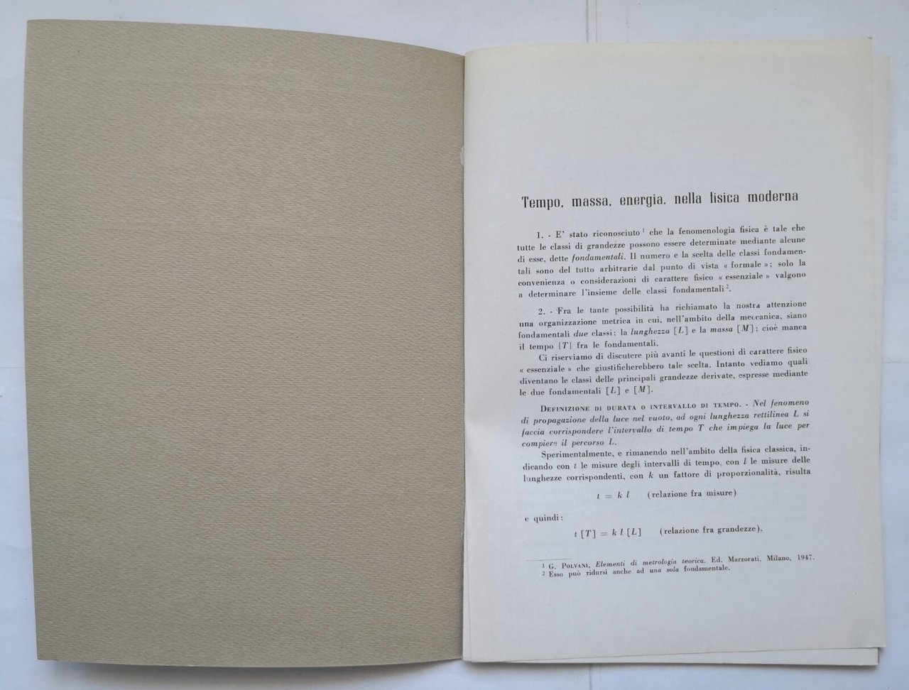 TEMPO MASSA ENERGIA NELLA FISICA MODERNA di Raffaele Vitale 1961 Libro estratto