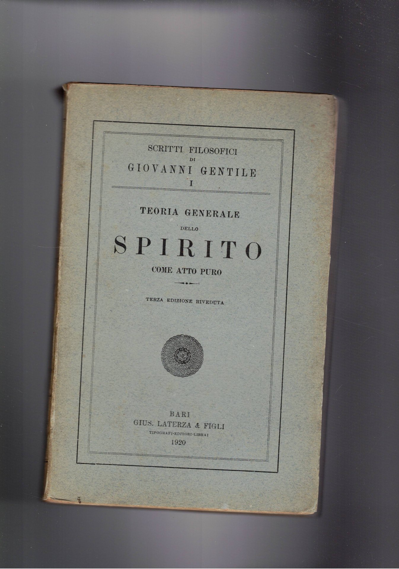 Teoria generaale dello spirito come atto puro. Terza ediz. riveduta. Vol. I° degli scritti filosofici di G.G. | Livres anciens et modernes | Gentile Giovanni.