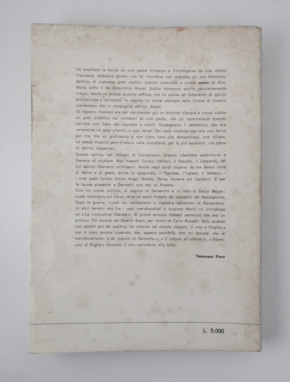 TERRA DI PUGLIA E BASILICATA Tommaso Fiore 1968 Pellegrini Libro storia locale