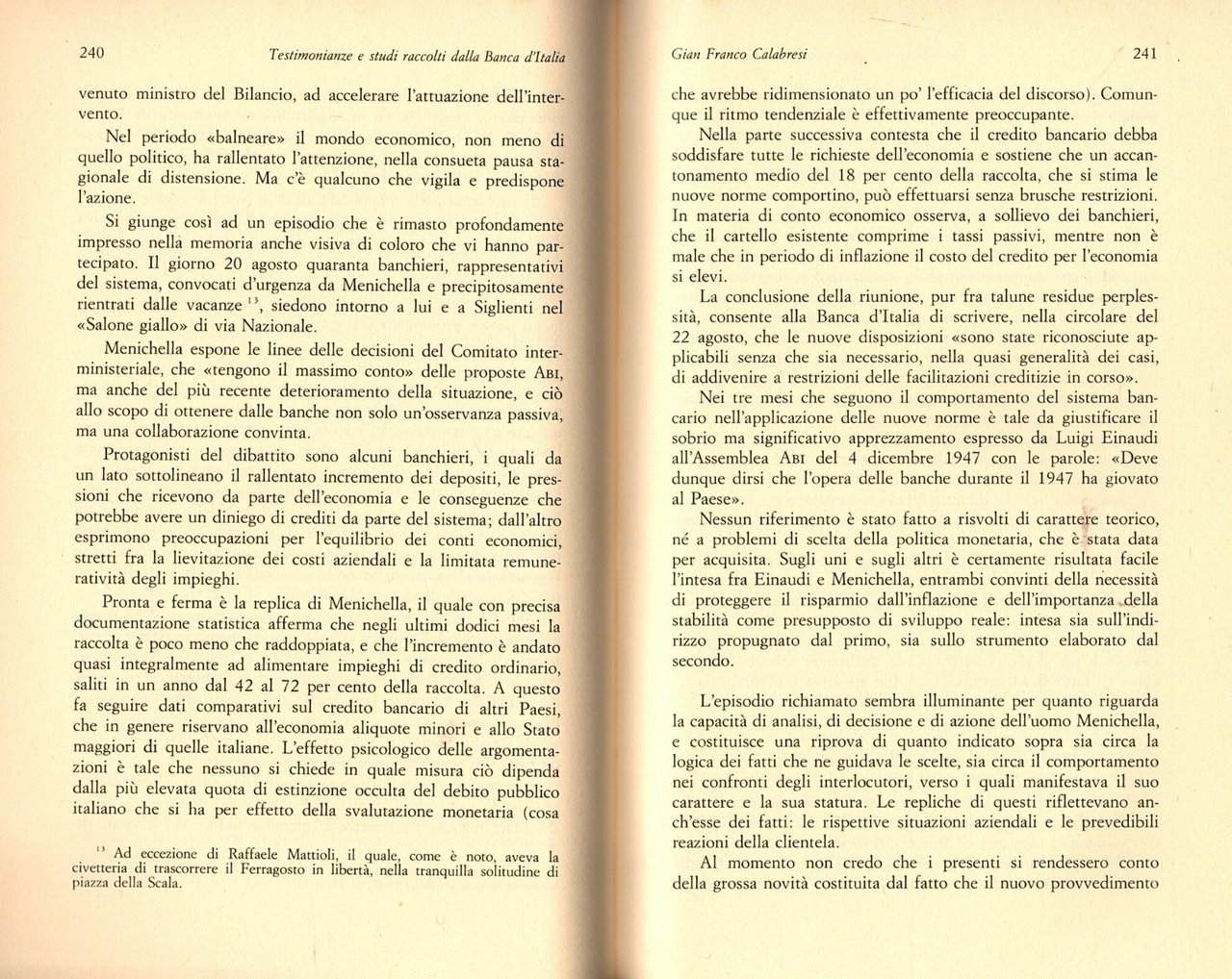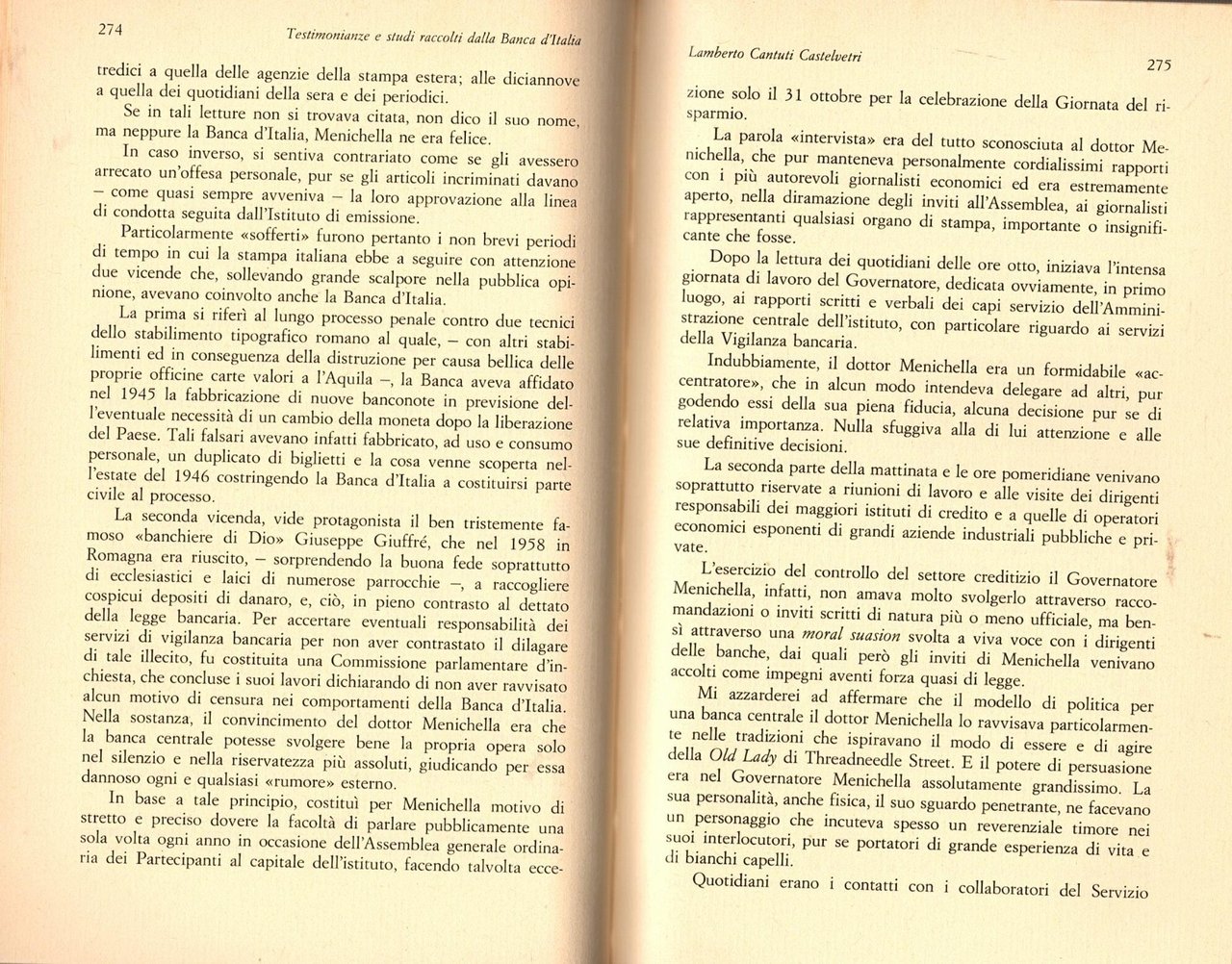 TESTIMONIANZE E STUDI RACCOLTI DALLA BANCA D'ITALIA di Menichella 1986 Laterza