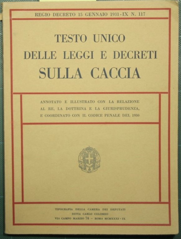 Testo unico delle leggi e decreti sulla caccia